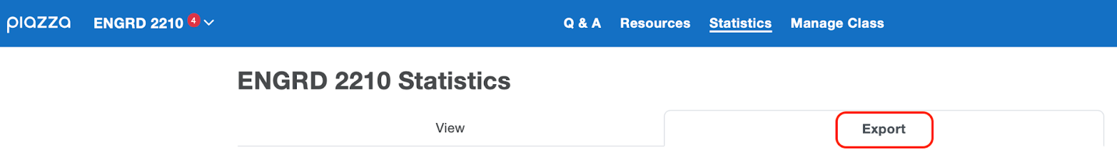 To access the export tool, click on Statistics > Export Statistics in the top bar: