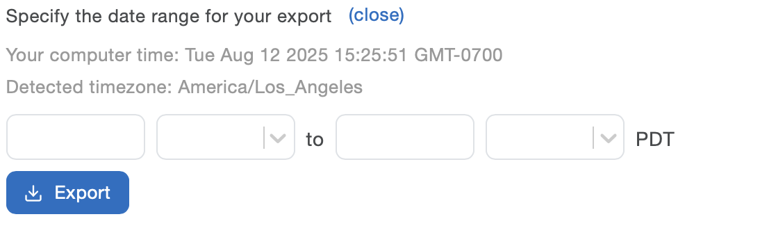 Finally, click Export to immediately download your specified data in a CSV file, or a zip file containing multiple CSV files.